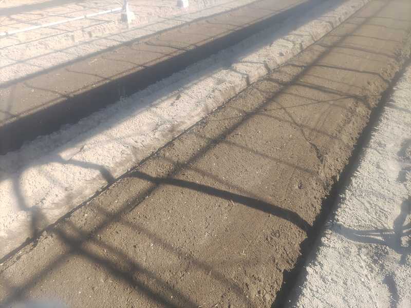 ②畝を立てる位置に紐を張り、足跡をつけます。