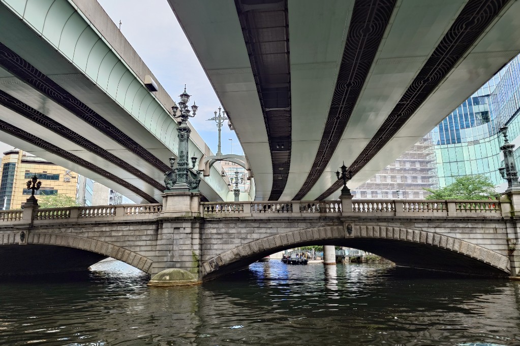 世の中はGWに突入、長いところでは11連休というところもあるようだが、私の職場はほぼカレンダー通りである。当初は長崎ハウステンボスとか、出雲大社とか、泊りがけの旅行も考えたが、羽田空港が混みそうなのと、なんとなく慌ただしいことから、結局都内近郊を回って過ごすことにした。日曜日のこの日は、午前中大手町の静嘉堂文庫美術館を見学し(別途アップ)、午後から日本橋に行ってみた。Golden Week has started, and while some people enjoy as long as an 11-day holiday, my workplace follows the regular calendar schedule.At first, I was considering trips that involved overnight stays, like Huis Ten Bosch in Nagasaki or Izumo Taisha Shrine, but due to the expected crowd at Haneda Airport and the feeling of a rushed schedule, I ultimately decided to spend time exploring the Tokyo metropolitan area nearby.On this Sunday, I visited the Seikado Bunko Art Museum in Otemachi in the morning (I will post separately about this), and in the afternoon, I went to Nihonbashi.言わずと知れた日本橋交差点。上を通る首都高速は現在トンネルにすべく工事中で、2037年には撤去される予定。時期を同じくして、高さ380mを超える超高層ビルも竣工するとのことで、このエリアの景観も劇的に変わることだろう。The Nihonbashi intersection is well known to everyone. The Metropolitan Expressway overhead is currently under construction to be moved underground, with plans for removal by 2037. Around the same time, a super high-rise building exceeding 380 meters in height is scheduled to be completed, so the landscape of this area will dramatically change.日本国道路元標(のレプリカ)Replica of the Japan National Road Origin Marker商売繁盛の稲荷、福徳神社。宝くじの当選祈願で知られている。Fukutoku Shrine, an Inari Shrine known for business prosperity. It is famous for prayers for winning the lottery.ビルの谷間にヒッソリとたたずむ小さな神社だが、参拝者が後を絶たない。A small shrine quietly nestled between tall buildings, yet it continues to attract many visitors.ゴディバカフェで時間調整して、日本橋船着き場に向かう。After spending some time at the Godiva Cafe, I headed toward the Nihonbashi boat dock.クルーズ船はこのようなミドルサイズのものだが、一応、水洗トイレも備えているそうだ。GWとあって、この日は予約で満員だった。The cruise ship was a medium-sized one like this, and it was equipped with flush toilets.Since it was Golden Week, the cruise was fully booked by reservation.ルートはこんな感じ。水道橋河から隅田川に出て、晴海や勝どき、佃を通ってぐるりと戻る。隅田川以降は浅草から出ている水上バスと似たコースだ。The route looked like this: From the Suidobashi River out to the Sumida River, then passing Harumi, Kachidoki, and Tsukuda before looping back.From the Sumida River onward, it’s a similar course to the water buses that depart from Asakusa.日本橋川はその流路の9割で、上を首都高速が走っている。The Nihonbashi River has the Shuto Expressway running over about 90% of its course.これはこれで、ある意味、非日常な景観だ。In its own way, this creates a somewhat surreal, extraordinary cityscape.