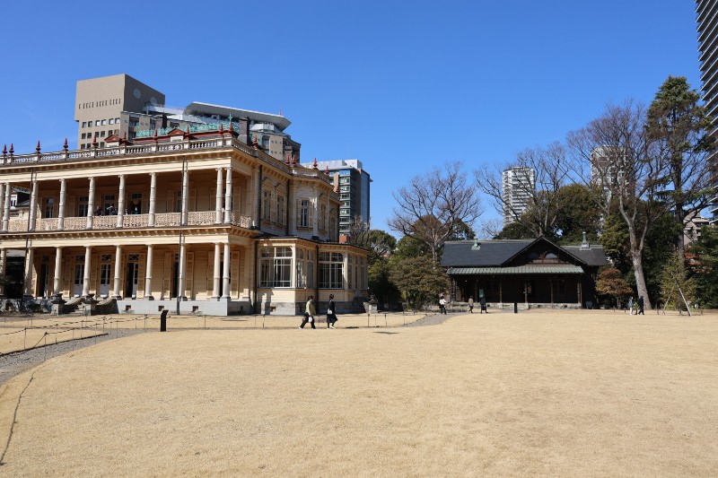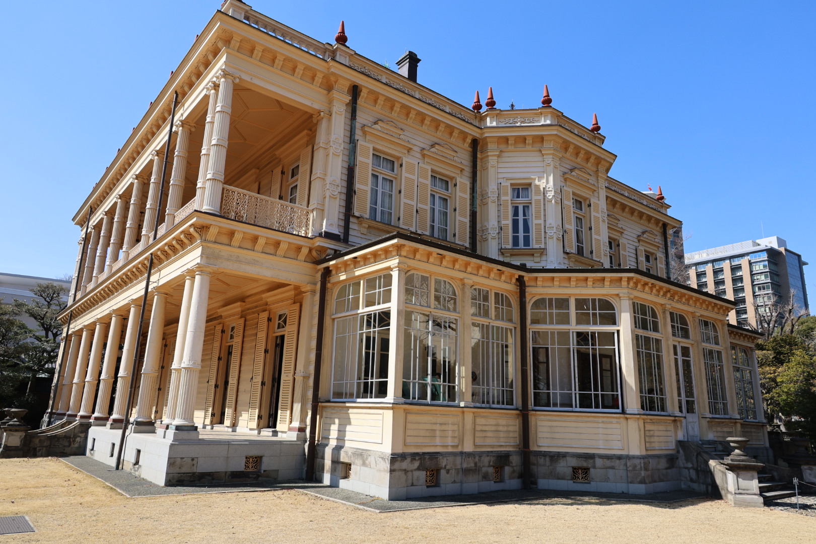 メインの洋館は、鹿鳴館の建築家として有名な英国人ジョサイア・コンドルの設計。近代日本住宅を代表する西洋木造建築として重要文化財に指定されている。