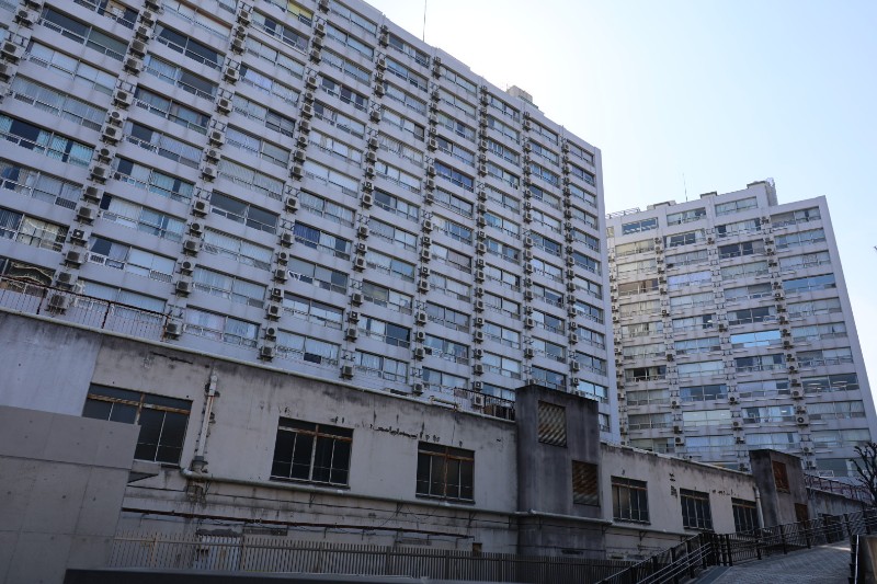 【追記】↑と書いたところ、Henryさんより情報をお寄せいただいた。築50年を超える、複合再開発のパイオニア的存在とのことでした。ちょっと異様に感じられる室外機の行列にもちゃんと理由があるんですね。「コミュニズム云々」などと書いて失礼しました。