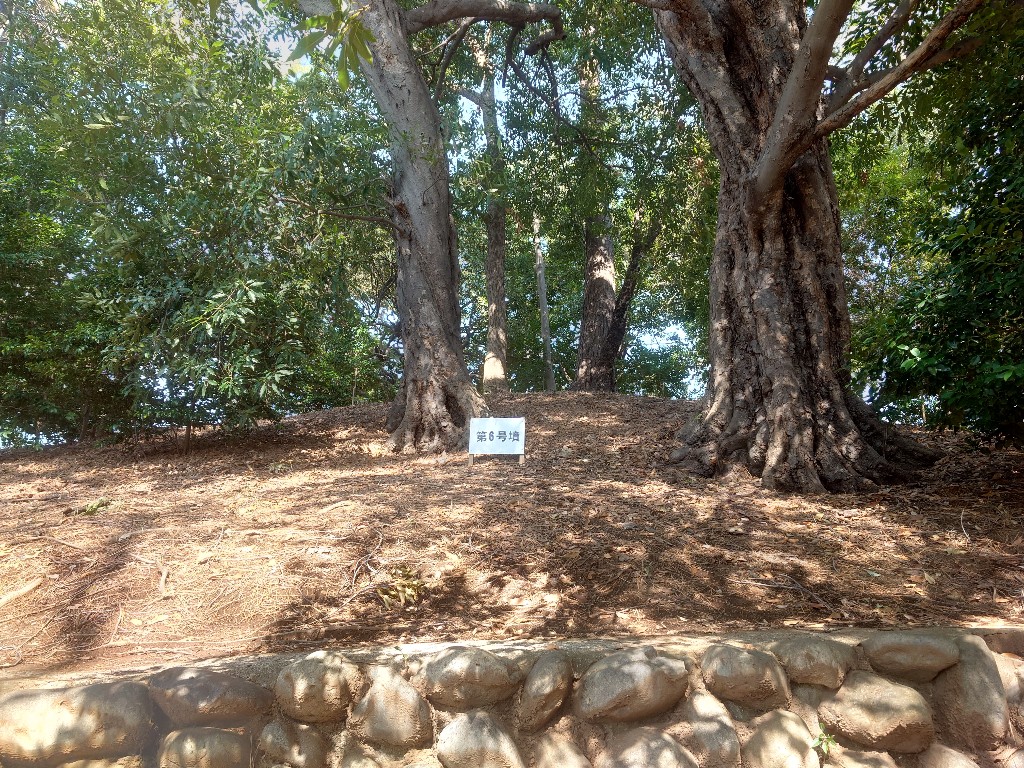 公園西端の宝来山古墳に向かう途中、8基の円墳が次々と現れる。いずれも、ちょっとした起伏に過ぎず、表記がなければ、それと気づかないレベルだ。これらの円墳はいずれも年代的には後年に作られたもので、概ね6~7世紀ごろと推定されているそうだ。