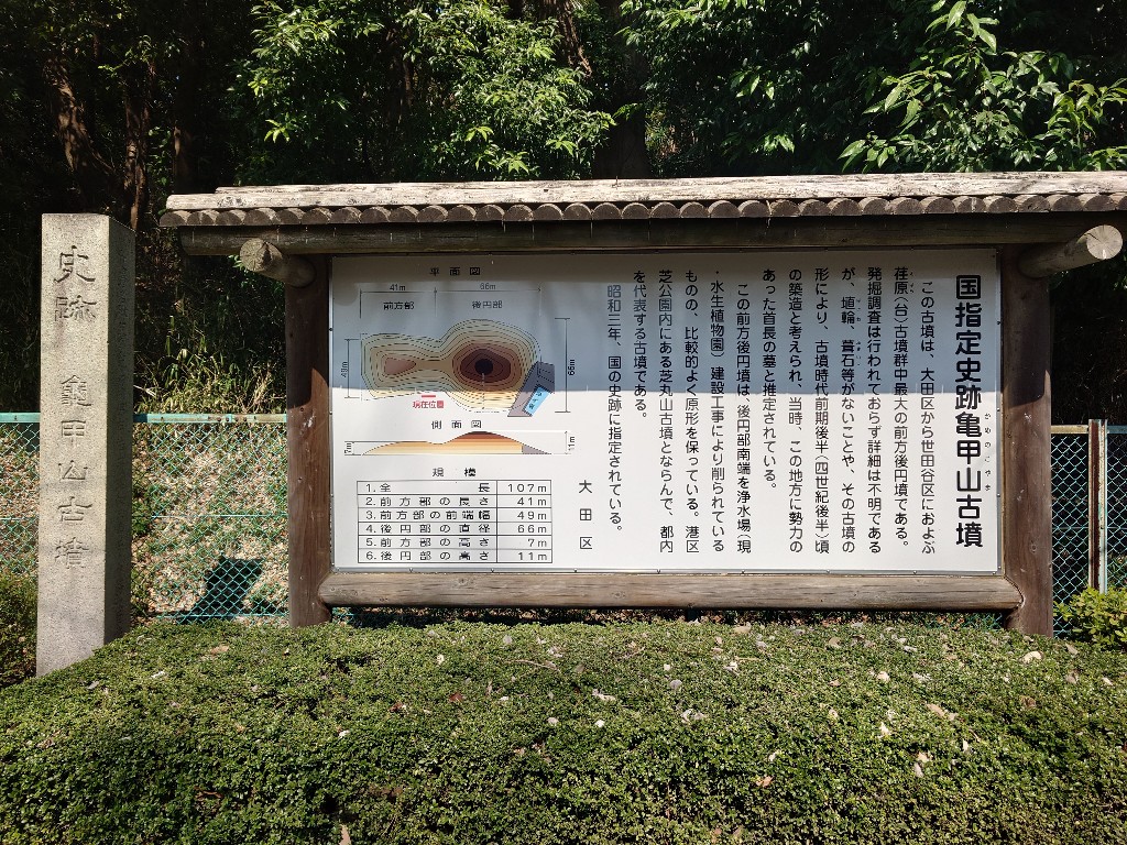Just past the stairs stands Kamenokoyama Kofun. While it can’t compare to the massive kofun of the Kansai region, such as Daisenryo Kofun, its mound length of 107.25 meters is still impressive. In fact, it’s the largest kofun in the South Musashi area along the Tamagawa River.