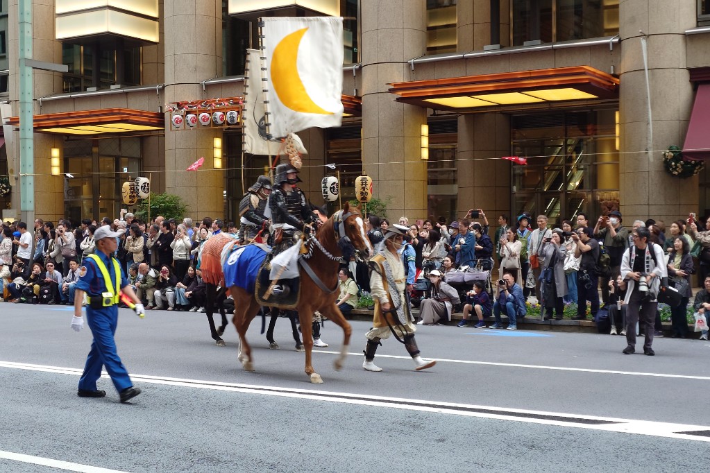 平安時代の衣装をまとった500人ほどの行列が神田明神を出発し、秋葉原の電気街や丸の内・大手町のオフィス街を通って、また神田明神へと戻る。 About 500 participants, dressed in Heian-period costumes, depart from Kanda Myōjin, pass through Akihabara’s Electric Town and the office districts of Marunouchi and Ōtemachi, before returning to the shrine.