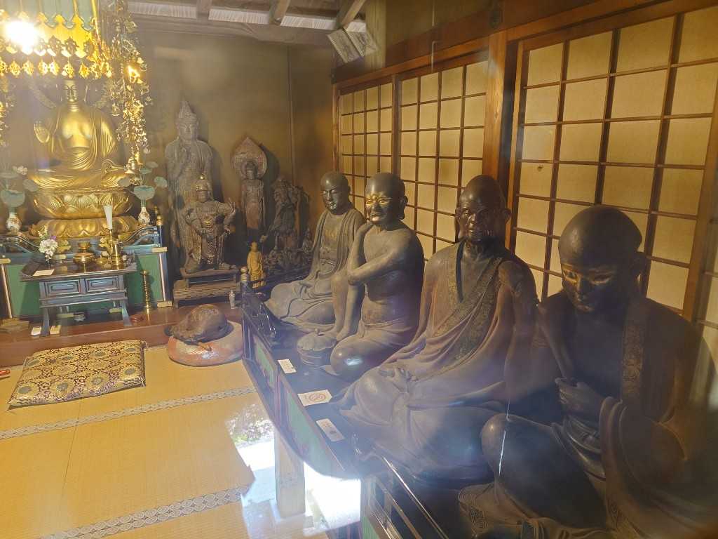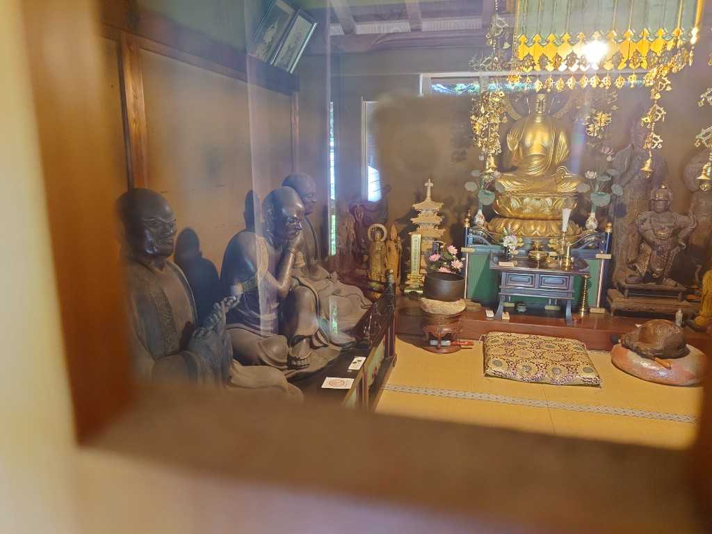 先日、目黒の五百羅漢寺で見た五百羅漢坐像のうち、九体がこちらの阿弥陀堂に奉安されていると知って、どうしても見てみたくなったのだ。 Recently, I learned that nine of the seated statues of the Five Hundred Arhats I saw at the Gohyaku Rakan-ji Temple in Meguro are enshrined here in the Amida Hall, and I really wanted to see them.