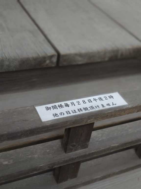 残念ながら、この日は中まで入ることはできなかったが、外から堂内を覗くことはできた。 Unfortunately, I wasn’t able to enter inside that day, but I was able to peek into the hall from outside.