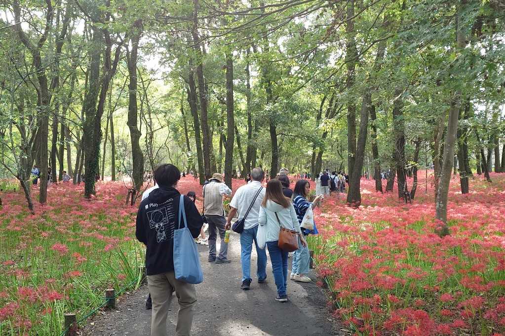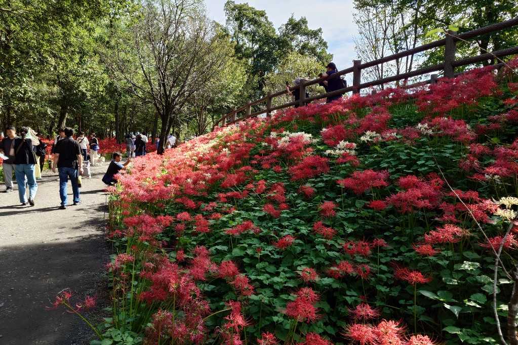 October 2 (Thursday) Since I happened to have the day off, I went to Kinchakuda in Saitama to see the red spider lilies. It was my first visit in three years, the last time being in 2022. Along the upper stream the colors had already begun to fade and it felt like the peak was over, but along the lower stream the flowers were in full bloom. I think the best viewing will probably last until around this weekend. For reference, three years ago I went on September 24. The extremely hot summer this year must have delayed the blooming considerably.