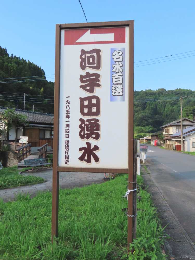 竹田湧水群の一つ。名水百選に選定されている。湧水量は1日8400t。竹田湧水群の中では最も湧水量が豊富で、道路沿いに位置しており最もアクセスが良い。湧水はミネラルウォーターやウイスキーの原水としても用いられている。竹田湧水群巡りの中心地とも言える場所で、広い駐車場やトイレを完備し複数の水汲み場も設けられており、連日多くの水汲み客が訪れている。付近には名水を用いた麺とスープが自慢のラーメン店「中華そば こっとん」や湧水で養殖したエノハを食べられる食事処「命水苑」があり、釣り堀もある。竹田湧水群は主に阿蘇山系の伏流水を水源としており、市内には50ヶ所以上にわたる水源地が点在している。1日の湧出量は60000~70000tと言われており、豊富な湧水量に加えて優れた水質を誇り、飲料水、生活用水、農業用水、淡水魚の養殖など幅広い分野で用いられている。湧水はミネラルウォーターとして販売されている他、湧水で育てられた米は名水米として親しまれている。すぐ近くには中島公園河川プールがあり、夏は多くの家族連れの観光客で賑わっている。県道8号線沿いに見える河宇田水源の看板。すぐそばに駐車場と水汲み場がある。水汲み場。駐車場のすぐそばに位置し、10本の汲み口があり汲みやすいように工夫がされている。かつての水汲み場。中華そば こっとん。名水を用いて作った麺とスープ、大分県産の食材を用いたこだわりの中華そばがいただける。併設するコットン水車では、地元の方々が育てた新鮮な野菜が販売されている。食事処 命水苑。名水で育てたエノハ(九州の一部地域におけるアマゴやヤマメの総称)を用いた料理がいただける食事処。メニューはエノハの塩焼きや甘露煮、ニジマスのあらいなどがあるが、頭からしっぽまで骨ごとサクッと食べられるエノハの唐揚げが人気。釣り堀。釣り竿代とエサ代は無料。釣った魚は100gにつき300円で買取する形となっており、持ち帰りの他に命水苑で調理して食べることも可能(調理台が別途必要)。エノハの養殖場。水はもちろん湧水を用いており、自然の水で育ったエノハは一層美味しいものとなっている。命水苑の裏側にある湧水池。周辺はコンクリートで舗装されている。↓ランキング参加中。この記事が良いと思った方はクリックしてねにほんブログ村