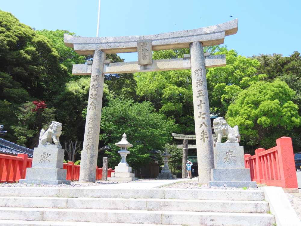 玄界灘と響灘の境界部に浮かぶ島(有人島)。「筑前大島」と呼ばれることもある。島内に鎮座する宗像大社 中津宮と沖津宮遥拝所は「神宿る島」宗像・沖ノ島と関連遺産群の1つとして世界遺産に登録されている。面積は7.45㎢、周囲は17km、人口は540人。横に長い島で起伏に富んだ地形をしている。神湊港から旅客船、フェリーで行けるようになっている。1日7便。神宿る島と言われる沖ノ島に最も近い島で、島の北部海沿いには沖津宮遥拝所があり、漁港近くの御嶽山麓には中津宮が鎮座している。施設や観光スポットが豊富で、島内にはホテル、旅館、民宿がいくつか点在しており、キャンプ場もある。漁港周辺には食事処やカフェもあり。観光スポットは風車展望所、大島灯台、御嶽山など。乗馬クラブ、バギーパークなどの体験スポットもある。釣りの名所でもあり、多くの釣り人が訪れている。レンタサイクル、レンタカー(要予約)あり。島内には観光路線バス「グランシマーレ」が運航している。徒歩専用のコースとして九州オルレ宗像・大島コースがあり、名所を巡りながら歩いて島をぐるりと一周することも可能となっている。日本神話において、天照大神(アマテラスオオカミ)が宗像三女神に御神勅を下し、湍津姫神(タギツヒメノカミ)がこの島を治め中津宮が鎮座したと言われている。1643年(寛永20年)に津和瀬の海岸に異国船が到来し、異国船警戒の為に遠見山山頂などに番所が設けられ、沖ノ島にも見張りが派遣されていた。1889年(明治22年)に宗像郡大島村として村政を開始。1905年(明治38年)の日本海海戦では沖合で大日本帝国海軍とロシア帝国海軍の激しい戦闘が起こり、大日本帝国海軍が勝利。犠牲になった多くのロシア兵の遺体が島へと流れ着いたという。1935年(昭和10年)に下関要塞のうちの大島砲台となり、カノン砲が4門配備された。太平洋戦争終戦後にそれらのカノン砲は撤去されたが、台座や観測台などの遺構が現在も残っている。2005年(平成17年)に宗像市へ編入合併した。2013年(平成25年)に先の日本海海戦の慰霊の為、大島砲台跡に日本海海鮮・戦死者慰霊碑が建立された。2017年(平成29年)に宗像大社 中津宮と沖津宮遥拝所が「神宿る島」宗像・沖ノ島と関連遺産群の1つとして世界遺産に登録された。神湊港から旅客船「しおかぜ」に乗り大島へ。所要時間は片道約25分。大島へ向かう途中で見える地島。こちらの島も神湊港から行けるようになっている。大島に到着。大島港渡船ターミナル。観光案内所と売店があり、2階は展望デッキとなっている。レンタサイクルが借りられるようになっているが数に限りがあり、1台もない場合は待ちが必要。付近には予約制のレンタカー大島もあり。宗像大社 中津宮。御祭神は湍津姫命(タギツヒメノカミ)。宗像大社の三宮の一つ。「神宿る島」宗像・沖ノ島と関連遺産群の1つとして世界遺産に登録されている。詳しくは宗像大社 中津宮を参照。御嶽山登山口。御嶽山の標高は224mで、島内の最高峰。ここから約800mの登山道を歩き、山頂の御嶽山展望台を目指す。登山道の序盤は急勾配が続き、途中に何箇所かベンチが設けられている。木々に包まれ木漏れ日差し込む登山道。山頂を目指してひたすら登っていく。歩き続けて20分、山頂に到着。御嶽山展望台。御嶽山の山頂にあるパノラマ展望台。登山だけでなく、車でも来れるようになっている。晴れた日は地島や相島、長崎県の壱岐島、福岡本土の福岡タワーやPayPayドーム福岡が見える。展望台からは天候の条件が良いと沖ノ島も見える。訪れた時は薄ぼんやりとではあるが沖ノ島が見えた。御嶽神社。国指定史跡に指定されている。御祭神は天照大神(アマテラスオオカミ)、湍津姫命の荒魂。五穀豊穣、家内安全、入試合格の祈願に訪れる人が多い。この地に湍津姫命が降臨したと言われている。宗像大社 中津宮とは古くから深い関わりを持っており、中津宮と繋がる形で境内が形成されている。社殿の裏側からは国家祭祀の遺跡が発見されている。大島灯台。島の北西に立つ灯台。1926年(大正15年)に初点灯し、1973年(昭和48年)に自動化されている。天気が良いとここからも沖ノ島が見える。大島灯台の手前左手に三浦洞窟までの道が伸びている。木々のトンネルをくぐって海岸に出て、そこから海沿いを歩いて三浦洞窟へ。三浦洞窟。海岸沿いに空いている高さ5m、奥行き6mの浅い洞窟。1643年(寛永20年)にヨハンというキリスト教の神父がこの島に流れ着き、この洞窟に隠れ住んでいたと言われている。キリスト教にまつわるものが見れると思いきや…洞窟内には何故か仏像や地蔵が安置されている。馬蹄岩。海岸沿いにある白色の巨岩。沖ノ島の沖津宮に祀られている田心姫神(タキリヒメノカミ)が馬に乗ってこの岩から沖ノ島へ飛び渡ったと言われ、岩の凹みはその時にできた馬の足跡と伝えられている。ハマヒサカキの群生。ハマヒサカキは海岸に生える常緑低木。県内では玄界灘から周防灘までの海岸に分布