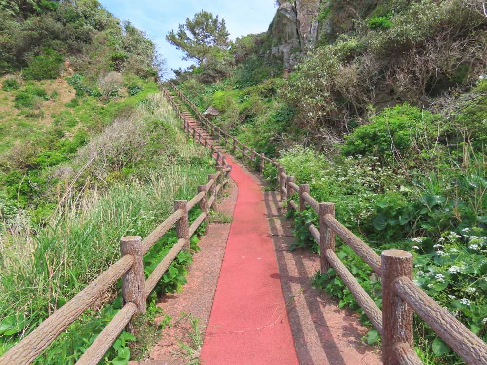 福岡県宗像市 『大島①』の続き。大島灯台から遊歩道を歩いて風車展望所まで。道のりはかなり長く、風車展望所まで片道1時間ほど。一部道が荒れていて、雑草が生い茂っているところもある。1人でひたすら歩き続け、本当に辿りつけるか不安だったが何とか風車展望所まで歩ききった。風車展望所。牧場の小高い丘の上にある風車と展望台。潮風に扇がれて風車が回るようになっているそうだが、訪れた時は回っていなかった。昼は展望台から眺める玄界灘と大空が綺麗だった。夜になると天体観測のスポットになってるんだとか。大島砲台跡。1935年(昭和10年)に大島の一部が下関要塞のうちの大島砲台となり、カノン砲が4門配備される。1945年(昭和20年)には砲兵部隊が緊急配備されていた。太平洋戦争終戦後にカノン砲は撤去されたが、コンクリート製の基礎が現在も遺構として残っている。砲台跡では2024年(令和6年)の響きあうアート宗像で展示された作品がいくつか見られた。観測所跡。玄界灘の敵艦の距離や速度を図るために使われていた建物で、ここにも響きあうアート宗像の作品があった。日本海海鮮・戦死者慰霊碑。1905年(明治38年)の日本海海戦において、島の沖合の玄界灘で大日本帝国海軍とロシア帝国海軍の艦隊が衝突。4830名のロシア兵と117名の日本兵が戦死した。戦死した英霊の安らかな永眠を祈り、2013年(平成25年)に大島砲台跡近くに慰霊碑が設置された。カナディアンキャンプ大島牧場で飼育されている馬たち。バス停の近く、柵から顔を出してこちらを興味深そうに見ていた。可愛い。カナディアンキャンプ大島牧場では乗馬体験ができるようになっており、馬に乗りながら大島の絶景を楽しめる(事前予約制)。沖津宮遥拝所。宗像大社の三宮の一つである沖津宮の遥拝所。「神宿る島」宗像・沖ノ島と関連遺産群の1つとして世界遺産に登録されている。島の北部、大島から約48km離れた沖ノ島・沖津宮へ拝む場所で、沖ノ島は一般人の上陸ができなくなっている為、ここが沖津宮へ最も近い参拝所となる。海沿い、石段を上ったところに社殿が建てられている。天候条件が良いとここからも沖ノ島が見れるようになっている。正三位神社。御祭神は綿積大神(ワタツミノオオカミ)。沖津宮遥拝所の左手に鎮座する。かつては沖津宮の末社だった。安倍宗任の墓。安倍宗任は平安時代の武将で、陸奥国(現福島県、宮城県、岩手県、青森県)の豪族。安倍元首相の先祖でもある。前九年の役にて宗任は敗れ、伊予国(現愛媛県)へと流され、更にその後大島へと流されこの地で亡くなった。近くには宗任が建立した安昌院があり、島内唯一の寺院となっている。港周辺に点在する旅館や民宿。大島交流館。中津宮、沖津宮遥拝所、沖ノ島を中心に、大島の歴史や文化を紹介・展示している。入場料は無料。厳島神社。御祭神は市杵島姫神(イチキシマヒメノカミ)。古くは市杵島神社、弁財天社とも呼ばれていた。夢の小夜島。室町時代の連歌師である宗祇がこの島に訪れ、和歌に詠んだ小島。手前には朱塗りの鳥居が立ち、小島を覆うように生える松の緑とのコントラストが美しい。干潮の時だけ近づけるようになっており、満潮の時には鳥居と小島が海に浮かび干潮の時とはまた違った光景を作り出す。海の道(干洲)。夢の小夜島の近く、干潮時のみ現れる海へと伸びる道。訪れた時はすっかり潮が引いており、奥の岩場まで行けるようになっていた。17時半の船に乗り、本土へ帰着。↓ランキング参加中。この記事が良いと思った方はクリックしてねにほんブログ村