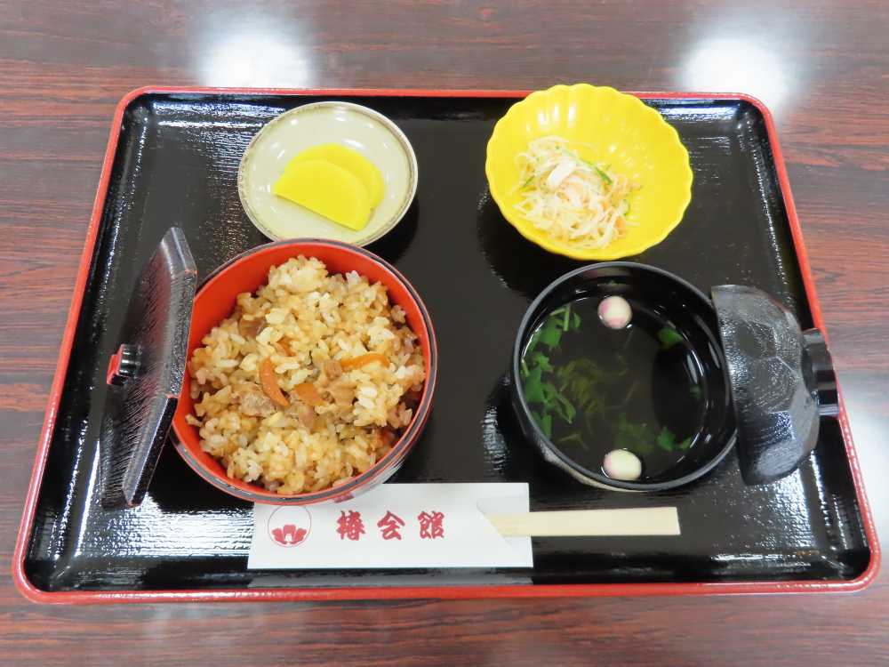 ○とりめし定食 梅とりめし、小鉢、吸い物、漬物椿大神社名物のとりめし。椿大神社の椿会館の中にある食事処。椿大神社の名物、とりめしが食べられる。早速いただいたとりめしは醤油で味付けしたご飯に鶏肉、ニンジン、ゴボウを混ぜ合わせたもので、見た目は福岡県のかしわ飯に近いが、味はそちらと比べるとやや濃いめといったところ。とりめしは先代宮司の夫人が遠くから参拝してきた参拝者をおもてなしする為に作ったのが始まりなんだそうで、素朴ながらやさしい味がした。とりめし定食は梅、竹、松から選ぶようになっており、竹だとデザートが付き、松だと刺身も付く。メニューは他に茶そば、天ぷら、湯豆腐などがある。椿会館にある売店では「椿とりめし折」として弁当での販売もされている。↓ランキング参加中。この記事が良いと思った方はクリックしてねにほんブログ村