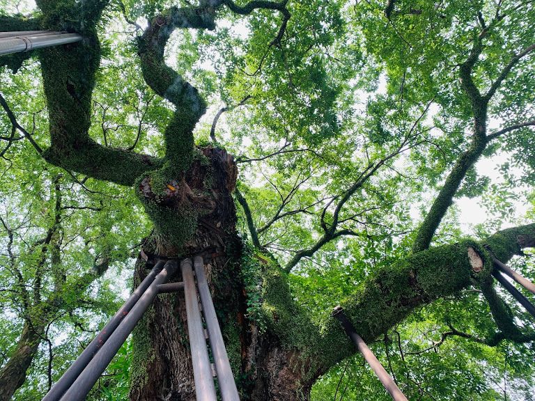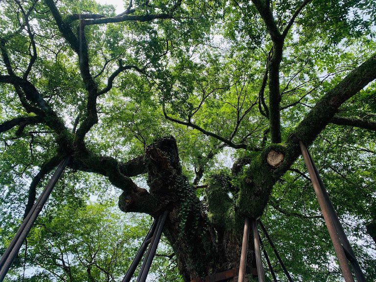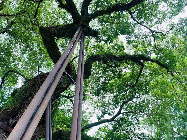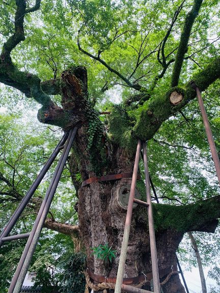 様々な角度から見た将軍木。 木は中がほとんど空洞になっており、 自立が出来ない状態になっている。なのでこうして、 鉄のバンドや支柱を使って木を支えている。