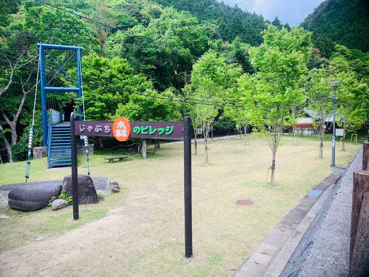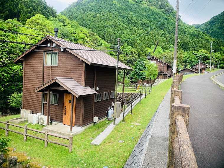 祓川沿いにあるキャンプ場、じゃぶち森のビレッジ。8棟のコテージと2棟のバンガローがある。
