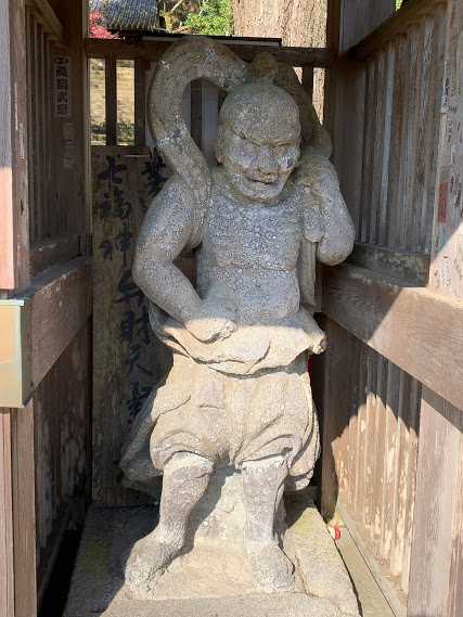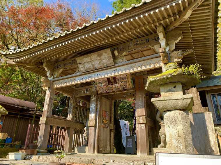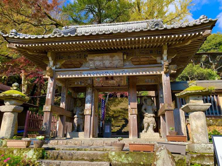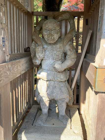 富貴寺入り口の仁王門。石造りの仁王像が安置されている。