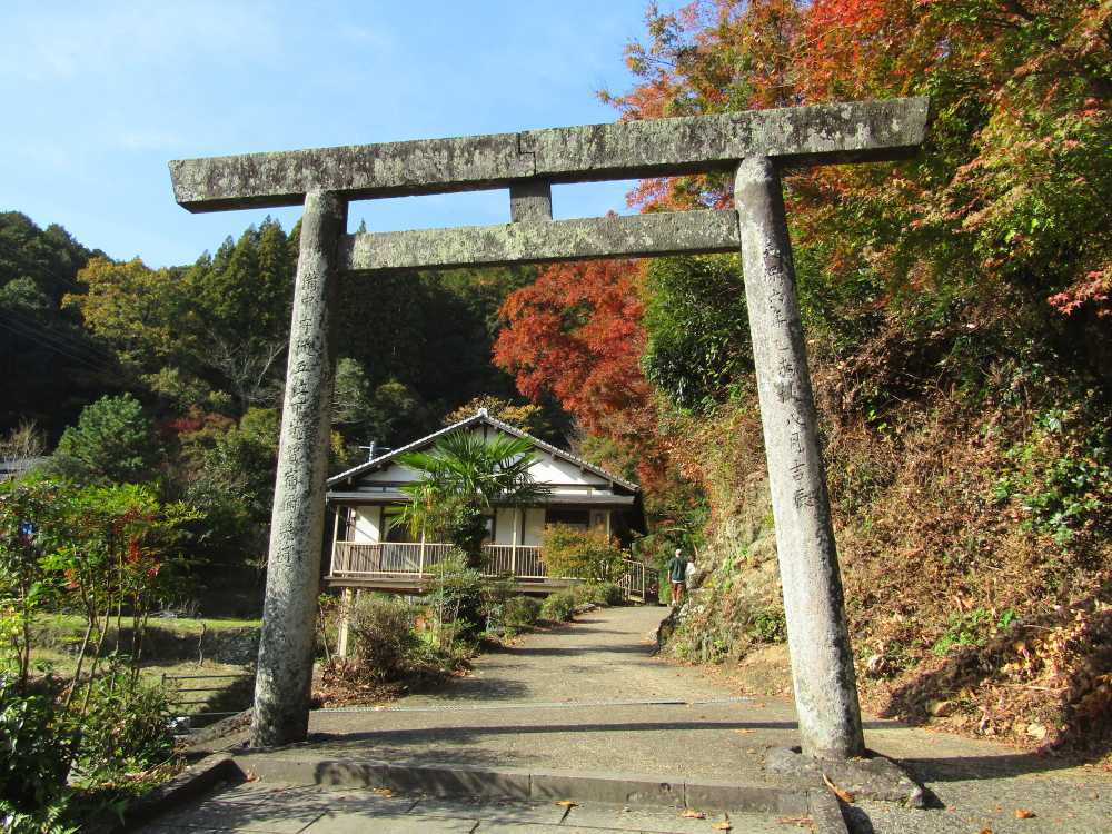 白馬渓入り口の一の鳥居。 伊勢神宮にちなんで鳥居も伊勢鳥居に近い形状となっている。