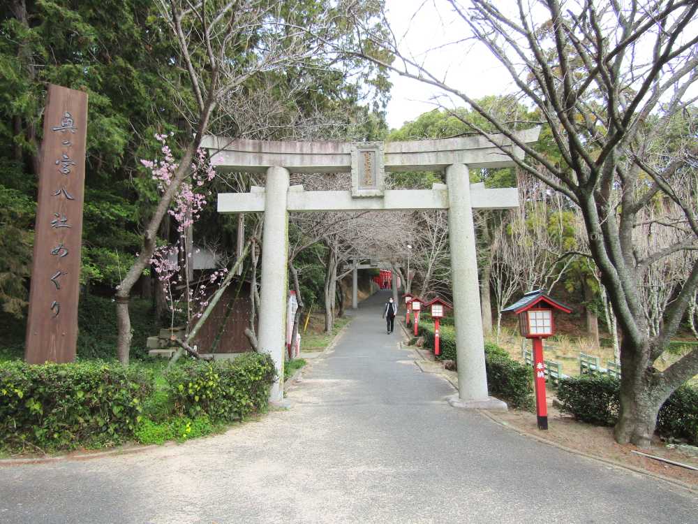 奥之宮八社入り口の鳥居。奥之宮八社めぐりと記された表札がある。