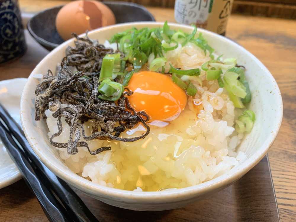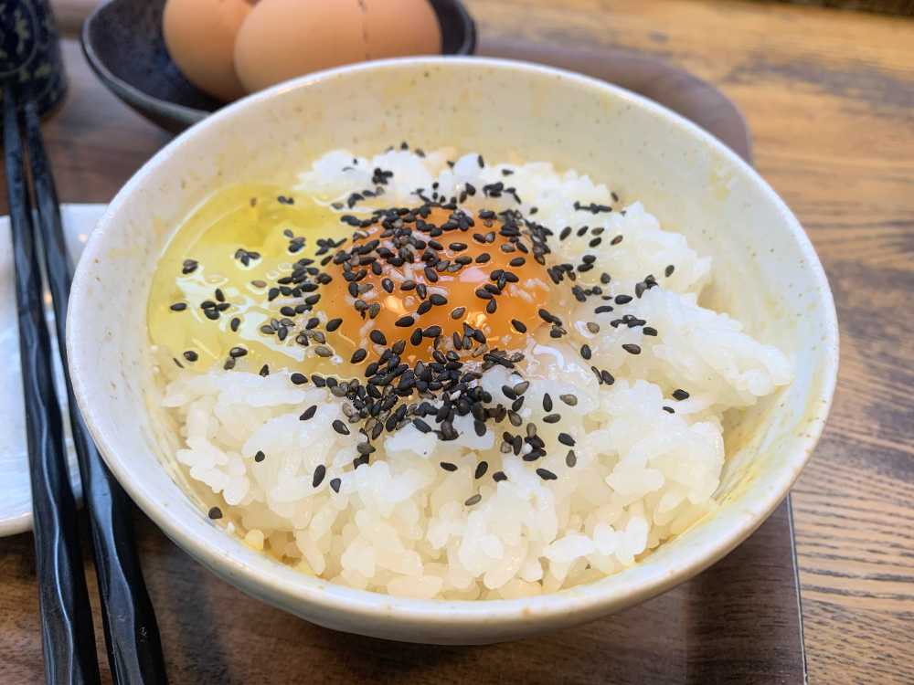 飯塚市にある畠中育雛場の直営店舗「たまごん工房」にある、卵ご飯専門のカフェ。 自家製米のほかほかご飯に、産みたての絶品卵をかけた卵かけご飯をいただける 値段は390円と安く、しかもおかわりし放題。 スタンダードな食べ方から薬味を載せてみたり、いろんな卵かけご飯を楽しめる。海苔や明太子など、追加料金で買えるトッピングもあり。