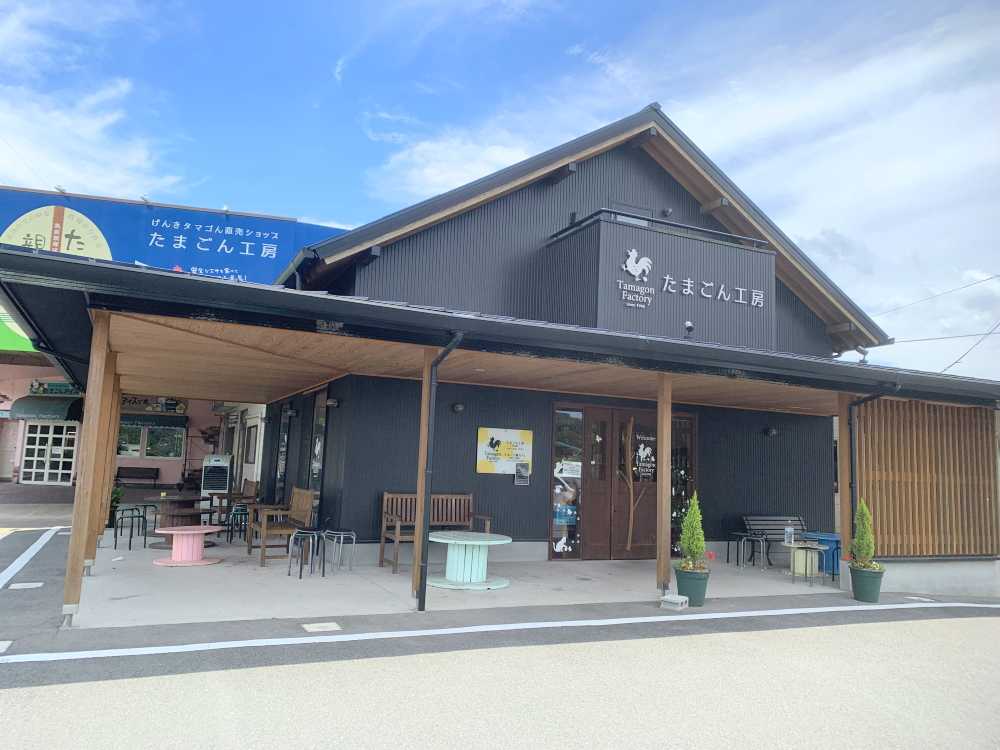 隣接するたまごん工房。 安心安全にこだわった新鮮な卵や、その卵を使ったたまごサンド、茶碗蒸し、ケーキなどの他に、有機肥料を使ったお米や野菜も販売されている。