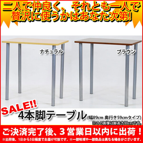 長方形テーブル★送料無料26%OFF/4本脚テーブル 4本足テーブル/長方形 四角/ブラウン茶/ナチュラル/PC パソコンデスク/カウンターテーブル/受付/ワークデスク/一人暮らし/SOHO/法人OK『4本脚テーブル:幅89m 奥行き59cm 高さ70.5cm』【長方形テーブル★送料無料26%OFF/4本脚テーブル 4本足テーブル/長方形 四角/ブラウン茶/ナチュラル/PC パソコンデスク/カウンターテーブル/受付/ワークデスク/一人暮らし/SOHO/法人OK】?様々な形・色・サイズを展開するテーブルキッツシリーズ?天板は長方形でナチュラル、ブラウンの2色から選択可能です。サイズは【幅89m 奥行き59cm 高さ70.5cm】です。コンパクトなテーブルとして ...