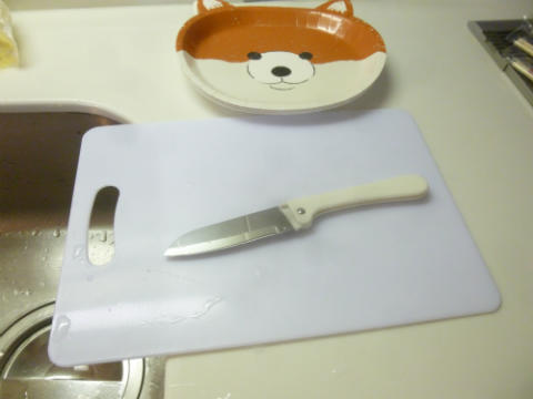 チェックインする前に100均でまな板と折りたたみ包丁、紙皿を買ってきました。