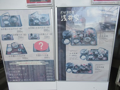 道の駅の飲食店「浅井家」のメニュー。