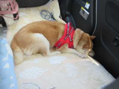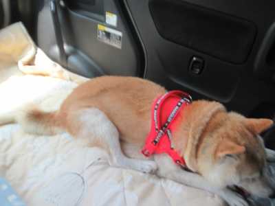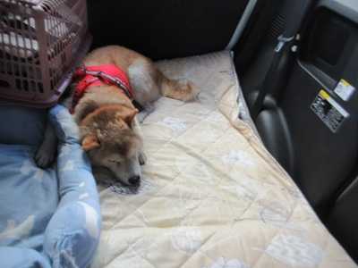 バイキング旅行記の続きです。温泉の次は朝食会場へ。朝食会場はゴルフ場のクラブハウス。ここの2階が朝食会場です。こういう席です。お料理はこのように並んでいました。こんな感じで取りました。パンとデザート。お腹一杯いただきました。朝から食べ過ぎました。コテージに戻るとゴンは2度寝中~。そうこうしているうちにチェックアウトの時間になりました。ゴン帰るよ~。チェックアウトを終えて帰るのですが、帰る前にもう一度ドッグランへ。でもゴンは、2度寝中だったのを起こして車に乗せてきたので、まだ眠そうにこんな状態。起すのも可哀そうだったので、ドッグランはあきらめてこのまま帰ることに。今回の宿泊料金ですが、1泊朝食付2人で18000円のプランでした。予約サイトのクーポン3000円と、ココパリゾートのホテルクーポン2000円を使い、5000円安くなりました。お支払いは13000円。ここはワンコは無料です。ここはリーズナブルだし、また利用するかも。旅行記は今日はここまで。明日に続きます。明日は旅行記最終です。