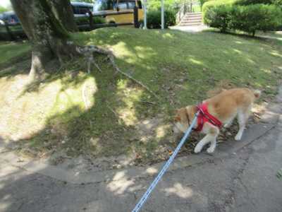 宮リバー度会パーク旅行記の続きです。帰途に就いているところです。途中の「宮リバー度会パーク」へ。行きにもここでお散歩していますが、帰りにも寄りました。寝ていたゴンも起きて、お散歩へ。ここは木陰がたくさんあるので、暑い時間帯でもお散歩できます。木陰を歩きました。写真はないけど、夏休み、川の方ではたくさんの人が泳いでいました。暑い時間帯だったし、さすがに遊具のところでは遊んでいる子はいなかったかな。そして帰途へ。一旦ここまで。午後に続きます。次回は旅行記最終です。