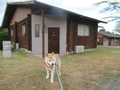 コテージ街をお散歩旅行記の続きです。ゴンの夕方散歩です。コテージ街を歩きました。コテージ街は芝生がいっぱいで、お散歩するのにいいところでした。ゴンも楽しそう。いつもより長めに、いっぱい歩きました。コテージ街中央にある焼肉屋さん。ここに製氷機があり、氷がもらえます。コテージに戻りゴンの夕食を。いつものドッグフードにちゅーるをトッピング。ガツガツでした。旅行記は今日はここまで。明日に続きます。
