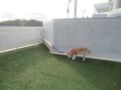 朝散歩&ドッグラン旅行記の続きです。2日目の朝です。朝散歩へ。やっぱり最初はホテル前の芝生をクンクン。ドッグラン奥の芝生をクンクン。道路に出て少し歩きます。道路わきの芝生をウロウロ。そして、ドッグランが空いていたのでドッグランに戻ってきました。ドッグランの中へ。ドッグランを自由にウロウロと。楽しそうに動き回っていました。お散歩にやってきたワンちゃんとご挨拶。旅行記は今日はここまで。明日に続きます。
