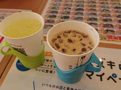 湯上りラウンジ&湯上り処旅行記の続きです。温泉に入った後は湯上り処でお父さんと待ち合わせ。湯上り処は広く、ヨギボーがあちらこちらに置かれています。フットマッサージ器も。足つぼコーナー。ここにコミックコーナーもありました。キッズコーナー。温泉ラウンジ。温泉ラウンジのドリンク類。ソフトドリンク。ワイン。3種類の梅酒。ビールとハイボールとサワー。湯上りドリンクをいただいて湯上り処の中央にあるここへ。ここはセラミック足湯です。石のようなものが温められていて、ここに足を乗せます。半分飲んでいるけど、私はブルーベリー梅酒の炭酸割。お父さんは柚子梅酒の炭酸割をいただきました。もう1杯私はオレンジジュース、お父さんはジンジャーエールをいただいて部屋に戻ります。一旦ここまで。午後に続きます。