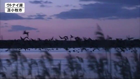 白老のスケソウダラの「すき身干し」。美味しいですよ~。すき身干し作業は4月いっぱいまで行われる模様ですので、お暇な方は、見学に行かれるのも良いかもしれませんね。苫小牧の「ウトナイ湖」も美唄の「宮島沼」も有名な野鳥の撮影スポットの一つ。徐々に氷が解けてきて、マガンさん達がシベリアに渡る途中の休憩地に最適な環境が季節的に整いつつあるのでしょうね。休日などは野鳥を撮影するために「ウトナイ湖」や「宮島沼」行くのも良いかもしれません。北海道の春の訪れを告げる一風景ですね~。