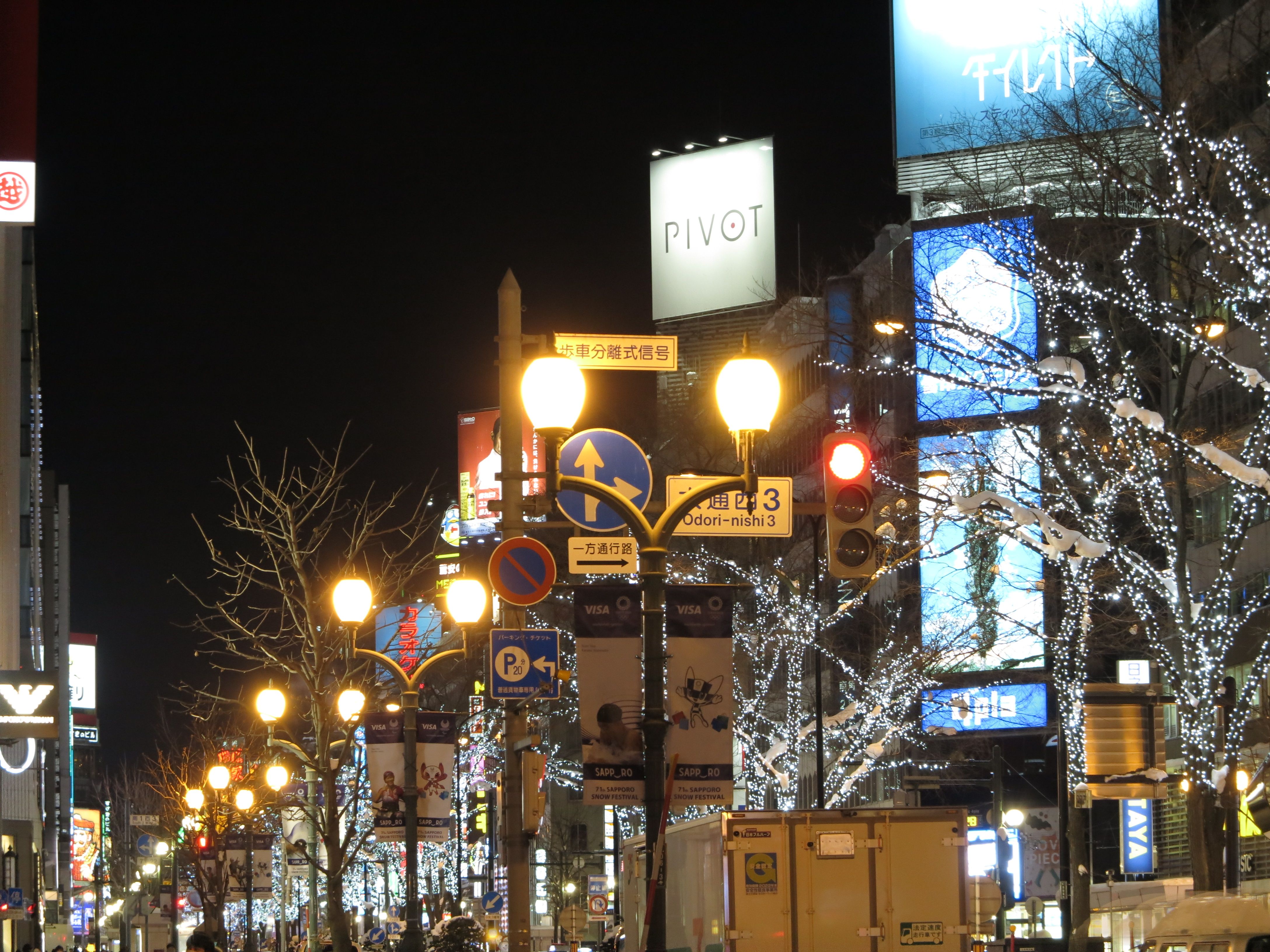 札幌も、だんだん春らしくなってきています。平地の道路や歩道には、影となる部分を除いては、ほとんど雪が解けて、路肩に積んである雪も、徐々に高が低くなってきています。道路では徐々に道路工事や道路のセンターラインや歩道橋の白線を引き直す「ライン引き」作業なども徐々に始まり、雪の積もっていた時に巻いたすべり止めの砂も、雪解け終了とともに乾き始め、砂ぼこりを上げるようになるので、道路清掃業者の水の散布車や、道路清掃車がブラシを回して、道路をお掃除している姿も見え始めています。