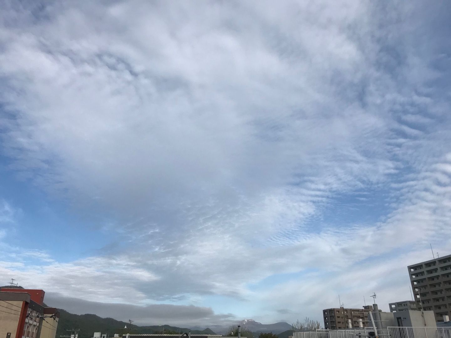 今朝の札幌地方上空: 今朝の札幌は晴れ間も見えますが曇り空の優勢な空模様。しかし外は明るく雲の位置も高いので雨の心配はなさそうですね。気温は寒い体感です(^^♪
