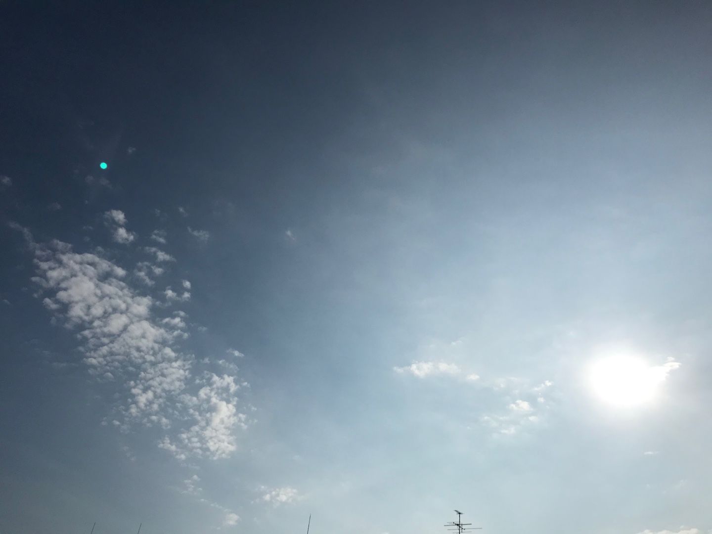 今朝の札幌地方上空: ​​ 今朝の札幌は雲が多い空模様でしたが日差しもシッカリと差し込んできていました。気温は丁度良い暖かさでした(^^♪