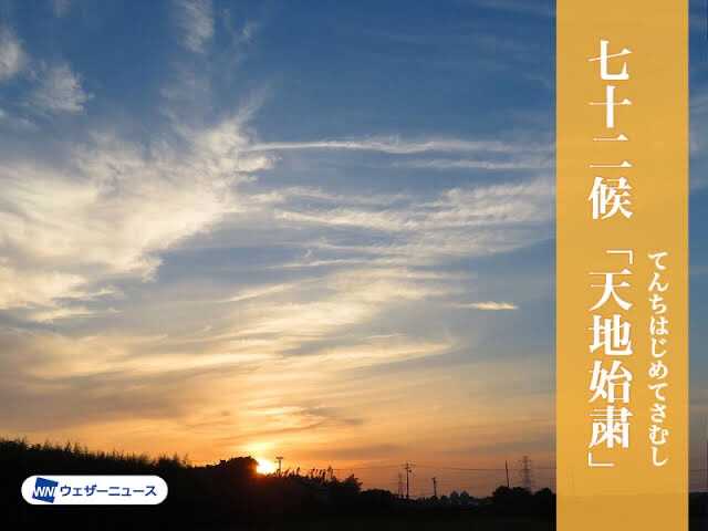 (ウエザーニュース お天気ニュース「夏の暑さも落ち着く頃 七十二候「天地始粛」」より:​ https://weathernews.jp/s/topics/202008/270085/ ​)
