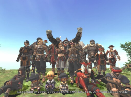 空LSが結束時の約束通り「人数が減って狩れなくなったら解散」という事態になりました。実は、私の知らないところで、人が結構やめてました。聞くところによると、引退8名、行方不明1名とのこと。うーん、当事は、「やめることなんて絶対ねぇっ」と思ってたけど、このような事態になってしまったことに対して、とても残念。とは言え、みんなリアルでの都合もありますので、仕方ないでしょう。しかし、LSが無くなり、今後は活動がなくなるのかと思いきや、リーダーがいろいろ試行錯誤して、新たな多目的LSを発足するとのこと。これは、ありがたいことなので、是非参加させて頂くことに。新LSでの活動内容は、今までの空限定という枠を取り払い、サルベージ・アルタユ・四神・麒麟・印章BC・HNM・バハムート・応龍など、大人数でしかできないことを、やりましょーってもの。新LSになり、新しい戦力が増え、また活気が戻ってくればと願うばかり。と、思っていたら、そうおちおちしてられ無そう。結束して、すぐマスター(リーダー)から、メッセージがメンバーへ流れたのですが、マスターの任命により、3人のサブマスターの1人に選ばれてしまいました。選んで頂いたので、私のできる範囲で精一杯ガンバらさせて頂きますが、リアルで仕事に家庭に忙しいので、おてやらかに。ということで、かなり長く続いた、空LSはこうして解散しました。あ、解散イベントのことを書こうと思ってたのに、新LSのことを長々と書いてしまった。ま、いっかwで、解散イベントですが、2/23(金)と2/24(土)の2日連続で、トリガー消費大会。2/23(金)は、朱雀1回、青龍2回やったそうです。私は、仕事で帰ったのは0時過ぎ。こちらは、参加できませんでした。続いて、2/24(土)は、麒麟2連戦。今まで、2連戦ってやったことなく、かなり長い時間戦闘してた気が。(最後の方は、ところどころ記憶が飛んでましたw)で、こっちの戦利品は、こんな感じ。 1戦目:光布 2戦目:麒麟棍、光布、オリハルコン・・・・肝心な免罪符、麒麟大袖はでず。かなりしょっぱい終わりでしたが、うちのLSらしい〆だったのでは?wこの後、記念撮影して、解散となりました。新しいLSでは、みなさん、また、よろしくお願い致します。