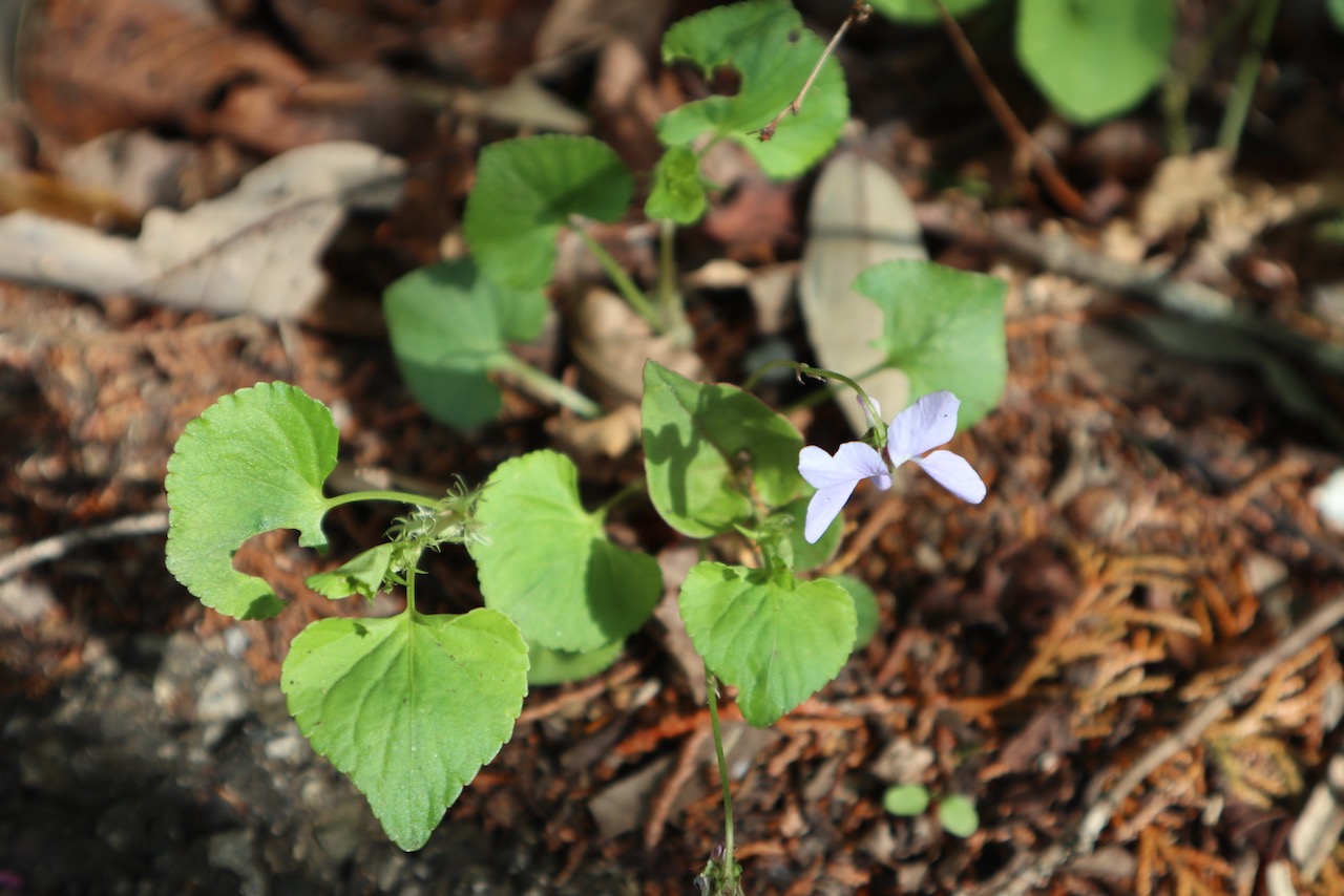 行きは登り坂、帰りは下り。人が歩かないので、道の真ん中にも花が咲いています。