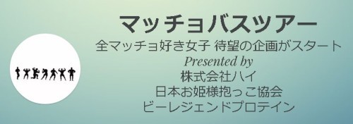 【マッチョバスツアー】 【日時】2015年2月28日(土) 2015年3月28日(土)※3月分のイベントは内容が大幅に変更する可能性がございます。 【参加資格】マッチョを愛する100キロ以下の女性の方々 【参加人数】限定15名 ※最低参加人数規定有 【チケット代金】通常シート 19800円(税込)VIPシート 22800円(税込 隣にマッチョが座っております)指名マッチョVIPシート 26880円(税込 マッチョシートより、隣のマッチョを選択出来ます)マッチョバスツアー 詳細↑↑↑blogランキング↑↑↑応援Clickお願いします。m(_ _)m↑↑↑