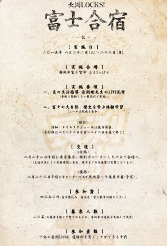 『長渕LOCKS! 富士合宿』開催日時:2015年8月22日(土)~23日(日) 一泊二日会場:静岡県富士宮市 ふもとっぱら土曜日の朝に東京を出発し、この合宿のために特別チャーターしたバスで会場に向かい、ふもとっぱらに到着!そこから、ライヴが始まるまでの時間は、とーやま校長と共に富士の自然と歴史を体感する特別プログラムを実施!こちらの詳細については後日発表します!そして、夜はもちろん長渕剛 10万人オールナイトライヴの見学!!!これは、条例に抵触しない時間帯で行います!ライヴを観て、深夜は合宿所で一旦休んで、早朝に再度ライヴに参加!全員で朝日を引きずり出すぞ!!!そして、ライヴが終わったらもう一度合宿所で少し休んで、その後同じバスで会場を出発し、日曜夜には東京に到着する予定!ただ、日曜日の午前中にもとーやま校長プロデュースによる特別プログラムを実施する可能性があります!(ここも現在検討中!)つまり、参加したい生徒は8月22日と23日の2日間をまるまる空けておくこと!ただ、バスの発着は東京なので、キミが住んでいる地域によっては、その移動や宿泊も考慮に入れてほしい!参加費:4,350円これは、バスや宿泊、全てを含んだ値段!富士の自然体験や長渕先生のライヴ見学もあることを考えると、相当“勉強”した値段設定になっています!募集人数:20名正直、かなり狭き門になってしまいますが、これは富士合宿を引率するとーやま校長が生徒諸君としっかり対峙するために考え抜いた最大人数!20人という数だけで考えると少なく感じますが、その分来てくれた生徒は、我々SCHOOL OF LOCK!が責任を持って、本気で受け止めます!以上が富士合宿の概要!そして、この富士合宿への応募資格を持つのは『長渕LOCKS! 道場訓』を貫くことができる10代!長渕LOCKS! 道場訓長渕LOCKSにて富士合宿の詳細1kg 無添加 素焼き アーモンド『送料無料』価格:2,287円(税込、送料込)↑↑↑blogランキング↑↑↑応援Clickお願いします。m(_ _)m↑↑↑