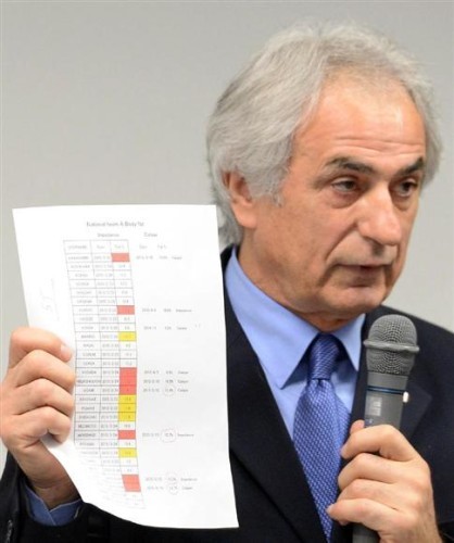 ハリル監督「体脂肪率改善せよ」 日本代表バヒド・ハリルホジッチ監督が14日、東京・文京区のJFAハウスで行われたJ1、J2合同実行委員会に出席した。 日本代表選手の体脂肪値が集計されたA4サイズの紙を示しながら「フィジカルの準備ができていない。赤(不合格)が多い。ほぼ国内組です」と指摘。出席者によると「体脂肪率は8~9%、高くても11%までが望ましい」と話し、宇佐美の名前を挙げた。3月下旬の計測時で宇佐美は14.1%。本田の6.6%や武藤の8.3%と比べ、「努力が必要だが、ものすごく能力が高い選手。私の要求に応えられるなら欧州のどの国でもやれる。かなり期待している」。改善次第で可能性が広がると力説した。 本田選手の目が飛び出してきているように見えたのは、体脂肪率が低くなったせいなんだ~。不健康に見えてたのに、これで正解だったとは…。※4/16追加:本田選手の目に関してネット上で、病気の噂もある。↑↑↑blogランキング↑↑↑応援Clickお願いします。m(_ _)m↑↑↑