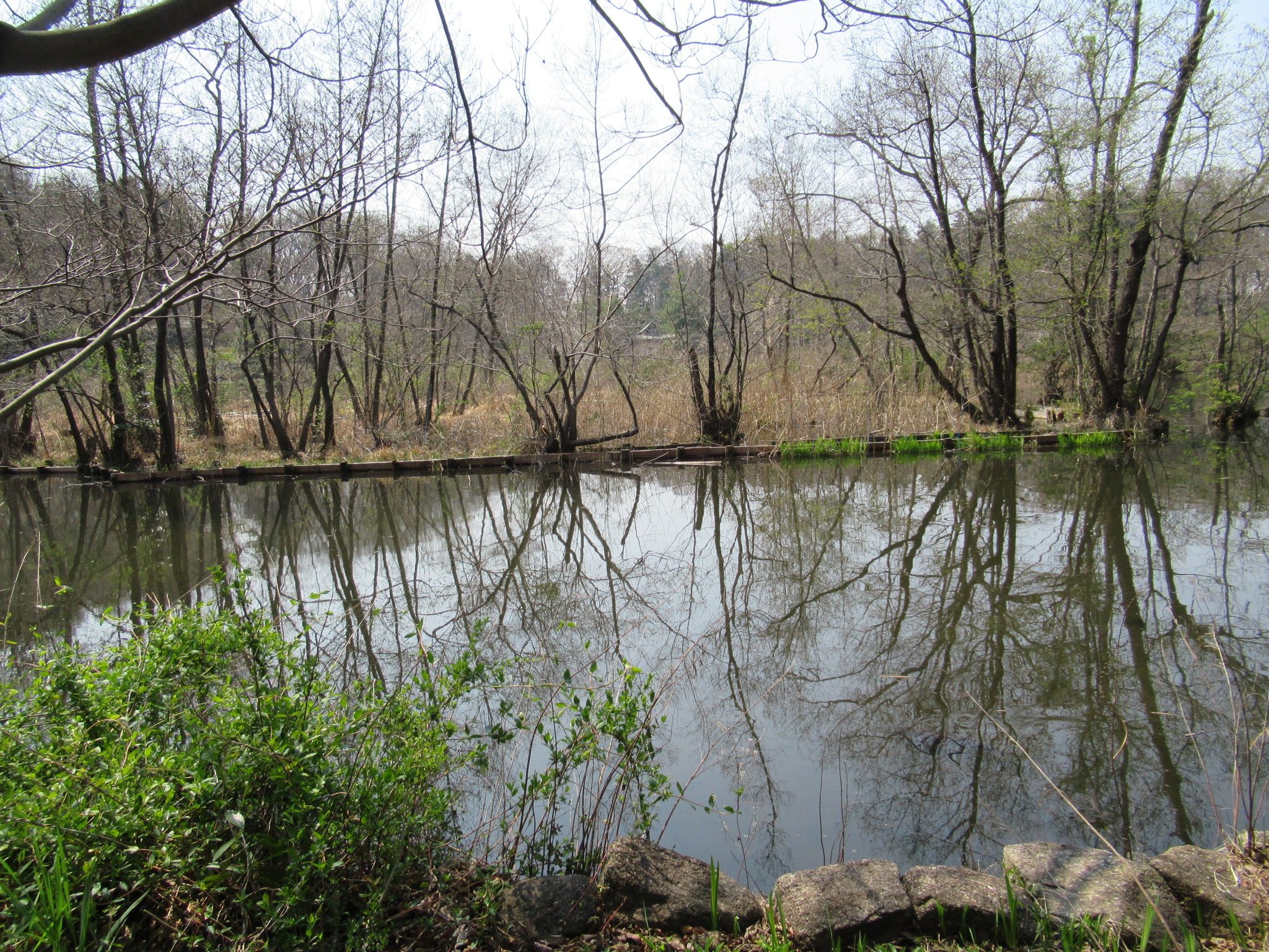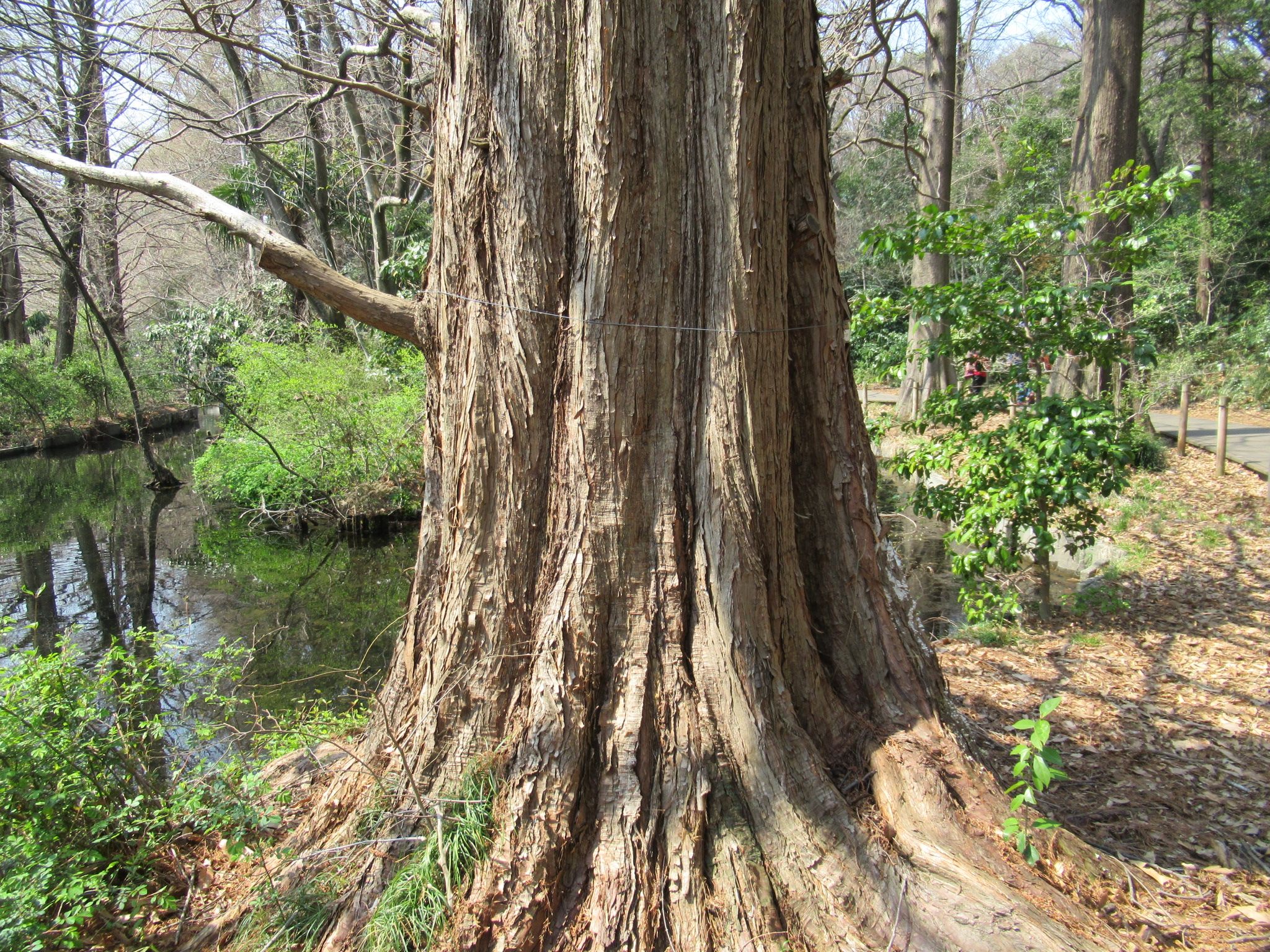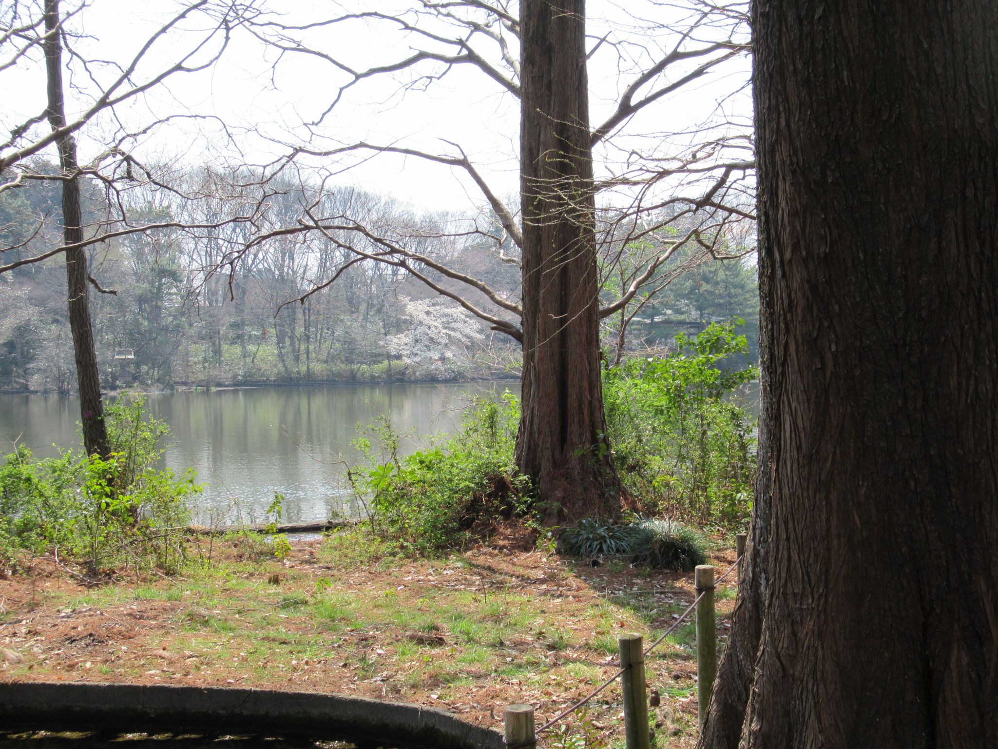 まだ芽吹いてはいないが池畔には大きなラクウショウとメタセコイアの木がたくさんある。