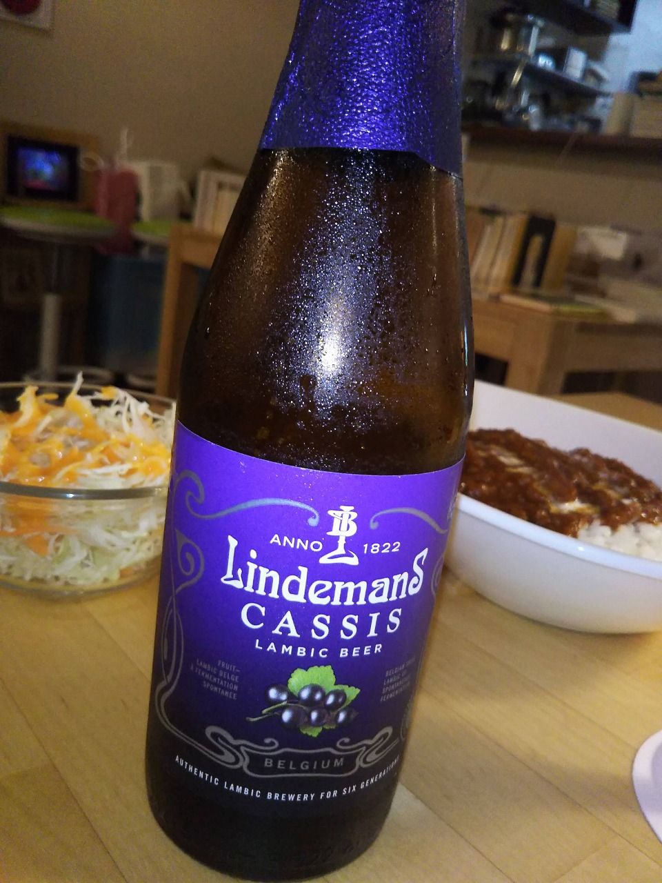 1822年創業のLindemans醸造所、カシス Lambic Beerと読める。