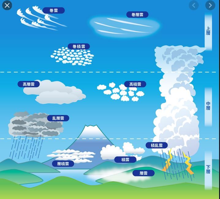 山で見る雲海、谷間を漂うガス雲、富士山を美しく見せる浮き雲などは下層雲。