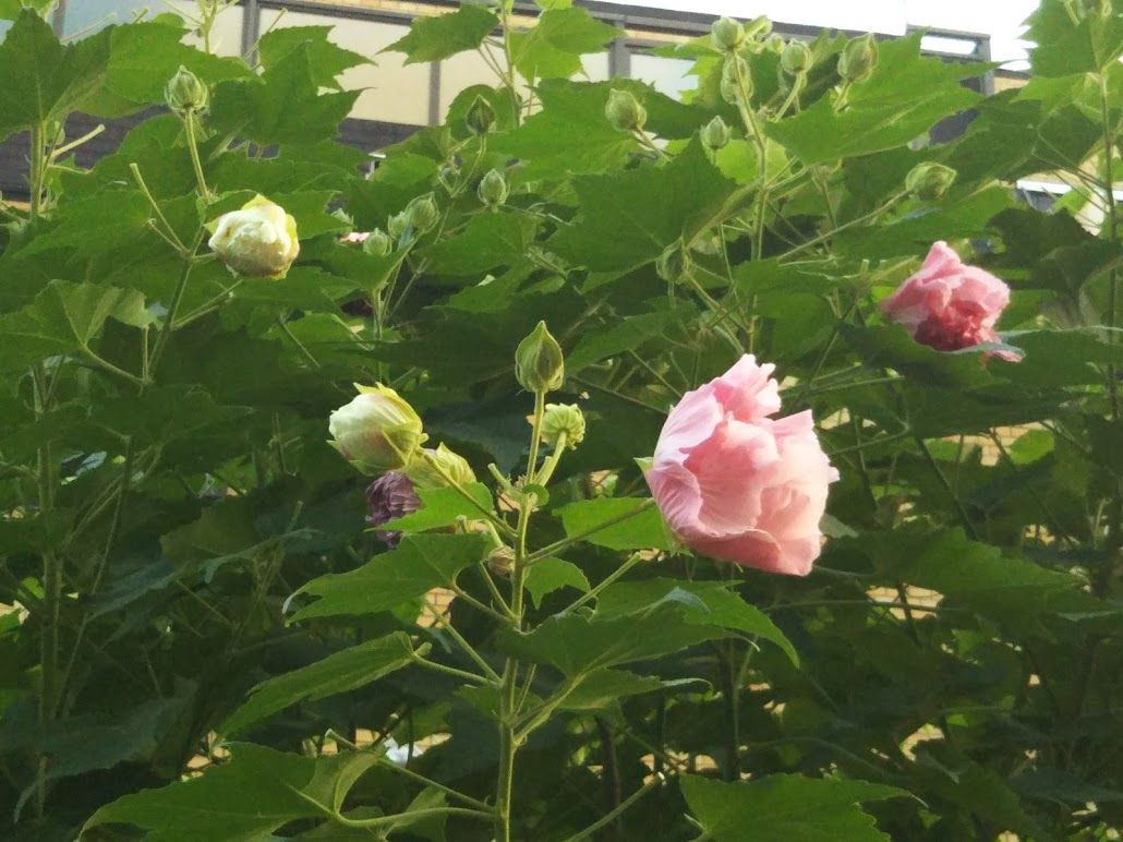 それに対して今を盛りの花として酔芙蓉がある。我が散歩道の始まり点に