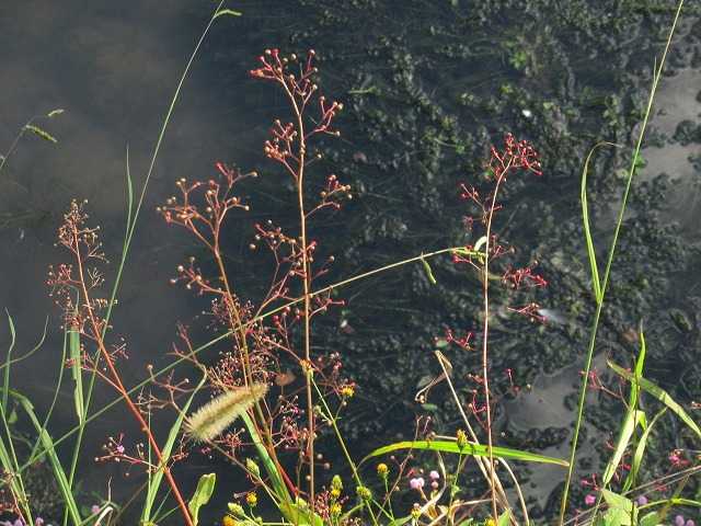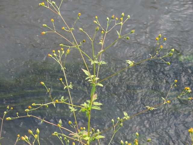 コウゾリナも線香花火のような花序が川面に揺れている。
