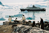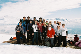 写真はがんバレー“ジャンプくん”2007へ ペンギンたちがそれまでの人が歩いた跡をたどっていくとそれほどでもないが、新雪のところを歩くと(前の人が遅いので抜くため)足を取られることがある。それでも、えっちらおっちら歩く。 すでに、登り終えて下山している人から「サンタクロースじゃないか!今日私にプレゼントはないの!?(^O^)」とかいう質問を浴びせかける。 「プレゼントは・・・この景色だよ!(^_-)」と答える。そして、頂上に登り詰めた。 その眺めというものは絶景! 湾内に停泊する船と流氷のコントラスト!その背景の山、空そして太陽!絵に描いたみたいだ!(^^)!そして右手の方は氷河が山から少しずつ(何年もかけて)海の方へと雪崩れ込んでいうかのように切り立っていながらかつ、今にも砕けそうな状態にある。船の全長は106m。それが、まるでプラモデルかのように見えることを考えると、この風景のスケールが大きすぎて、全く想像ができないのである。「一体、あの氷の支柱の高さは何mなんだろう(?_?)」 ここに来て、 「本当に南極に来たんだ!」と実感した。そしてそこは、海抜220m、気圧980mb、気温9度の場所からである。 人気blogランキングへ!ココをクリック!blogランキングへ!ココをクリック!