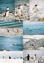 上陸した地点にはペンギンたちがいる。海に入ったり出たりして遊んでいるようだ。それ以上に感じるもの・・・・それは、ペンギンの糞の臭い(*_*)「もう、飽きてきた。」いや、「慣れてきた。」といった方がいいだろう。浜辺には雪が少々積もっているが、その雪とペンギンの糞で雪が黄緑っぽい(T_T) その浜辺を左手の方に進む。人気blogランキングへ!ココをクリック!bogランキングへ!ココをクリック!