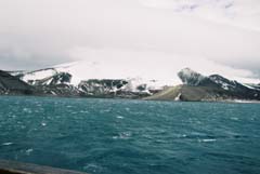甲板からデセプション島を見る 5:00起床。船内放送はない。しかも外はかなり波が荒い。「これは中止だ!(Bailey Head上陸)」ということで、二度寝。 8:00朝食。Nさん兄弟と一緒に食事をする。その後、【Deception Island】に上陸する前に島の説明が行われた。 まずは、「デセプション島」の話しだが、「この島自体火山でカルデラ地形になっている。この島に海水が入って現在の形が形成された」とか言っているようだ。詳しいことは分からない。 そして次に、【Deception Island】の入口【Neptune's Bellows】を通って、【Port Foster】という島の湾内に入り、【Whalers Bay】という元捕鯨船基地に上陸し、上陸したら【Neptune's Bellows】の方へ行け」とか言っているようだ。詳しいことは分からない。 次に【Telefon Bay】は「南極で唯一温泉が湧いているところ。水着の用意をしておくように」とか言っているようだ。詳しいことは分からない。最後は【Pendulum Cove】から上陸して【火山口(カルデラ)】に登る」とか言っているようだ。詳しいことは分からない。人気blogランキングへ!ココをクリック!ogランキングへ!ココをクリック!