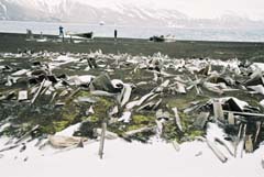 10:00ゾディアックボートに乗り込む。 今回は、かなり日差しがきつく、感じたので、日焼け止めクリームやリップクリームをした上に顔をマスクで覆う。 やがて、元捕鯨基地前に到着。到着後すぐに右手の方へ向かう。 すると、鯨の骨が海岸に落ちている。 次に、「あれは何かな?」と思い近寄ってみると、2つのお墓があった。何とも言えない思いがした。こんなところに埋葬されても、嬉しくないよな!なぜなら、墓参りしてくれる人がいないじゃないですか。何故、遺体(骨)を家族の元に届けてあげなかったのだろうか!?・・・悔やむだけだった。人気blogランキングへ!ココをクリック!bogランキングへ!ココをクリック!