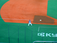 16:00開場。やっと、入れる。(待つこと約1時間半) 入口には、準備しているお姉さんたち。内野自由席3階ということで一番上に行く。指定席にしておいて欲しいな!試合開始。徳島人は阪神ファンが多い。このメンバーもそうである。子どものなかに中日ファンもいた。もちろん私は興味なし・・・( ̄ー ̄)ニヤリッ 興味あるのは中村紀洋だけです。元気にしとるか~~!福留もいないこともあって3番。 周りは中日の二遊間コンビ井端・荒木の練習に「やっぱりうまいな~」というが、ノリも上手いのを知らんな~( ̄ー ̄)ニヤリッ 四回には、チーム初安打となる中村紀洋の左中間二塁打から森野の中前適時打で1点を先制し、さらに阪神のエラーで1点追加の計2点。中村紀洋が人生で最初のスクイズは失敗(写真の通り)近鉄時代にそんなことさせていたら、大変だっただろう。人間、丸くなりました。今日は箕面自由学園高校のチアガールもやってきた。阪神のフロントもがんばっていますね。 試合の得点はこのときだけで特に盛り上がるようなこともなく、試合終了。7回裏にはジェット風船を飛ばしたりしたがさすが人数が多いと綺麗だ(係員は大変)1~3回まで睡眠。8回睡眠。よく寝た。ダンスをしながら阪神を応援するオッちゃんもいましたが・・・やっぱり、近鉄の試合でないので・・・つまらん。今日は20:45日終了。23:45に到着。24:05家に到着・・・(o´Д`)=з 疲れた・・・ 息子の調子が悪い ( ̄ロ ̄lll) ガビーン へその中が痛いとドームから言うが、大丈夫だろうか・・・クリックはこちら