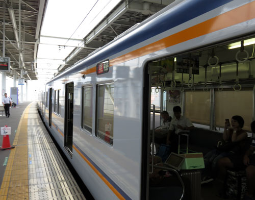 和歌山市駅で乗り換え、13:20着、13:28発。泉佐野駅13:58着、14:13発。